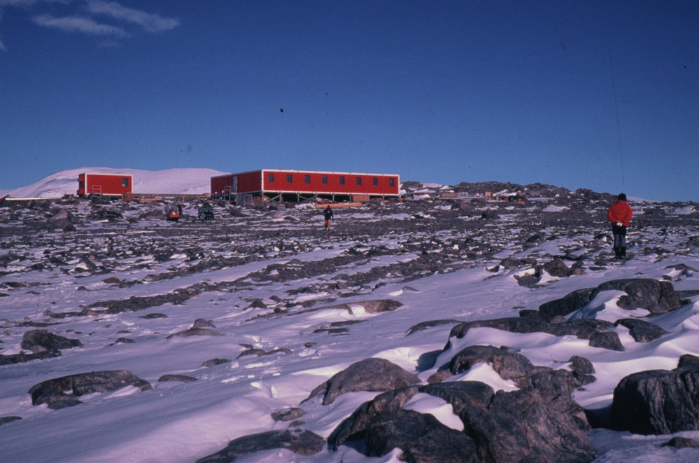 DescriptionSeaward side of Zucchelli Station, Terra Nova BayPhotographerD CrerarSeason1988-1989Date Taken1988-1989 SeasonOriginalSlideNo. People2-5LocationTerra Nova BayGeolocation[1] Position