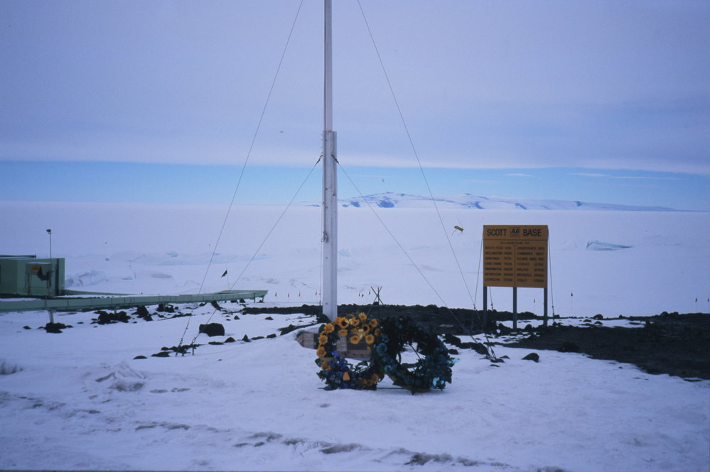 Wreaths at the Memorial Ceremony for Erebus at Sc ott base Flagpole. Antarctica NZ, accessed 07/04/2026, https://adam.antarcticanz.govt.nz/nodes/view/27530