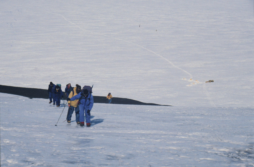 DescriptionAscending Mount Aurora from Black Island CampPhotographerKeith SpringerProgrammeK402EventK402-0102Date Taken2001-12-01OriginalSlideNo. People5-10LocationMount AuroraGeolocation[1] Position