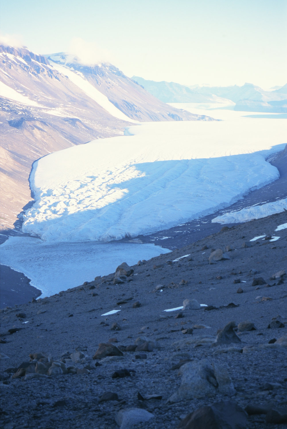 DescriptionTaylor Glacier with Lake Bonney at its footPhotographerKeith RobertsProgrammeK402EventK402-0102Season2001-2002Date Taken2001-2002 SeasonOriginalSlideLocationLake BonneyGeolocation[1] Position