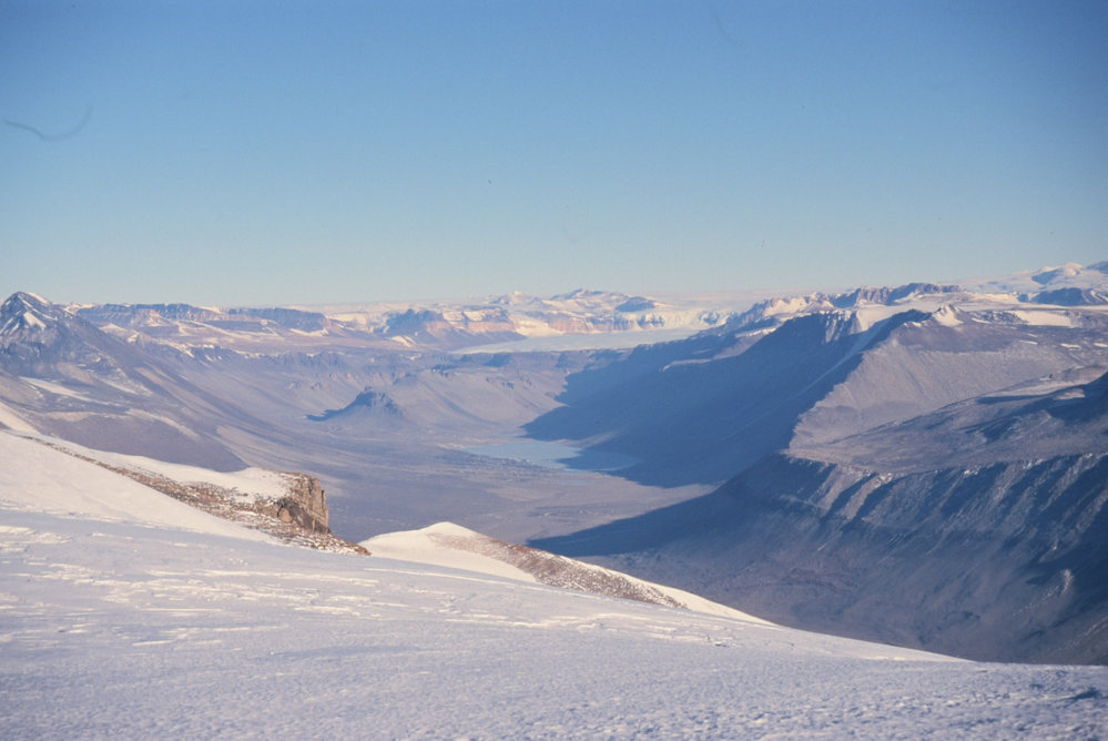 Upper Wright Valley from Mt Newall with Lake Vanda, Upper Wright Glacier and Air Devron Six Icefalls visible. Antarctica NZ, accessed 04/04/2026, https://adam.antarcticanz.govt.nz/nodes/view/27691