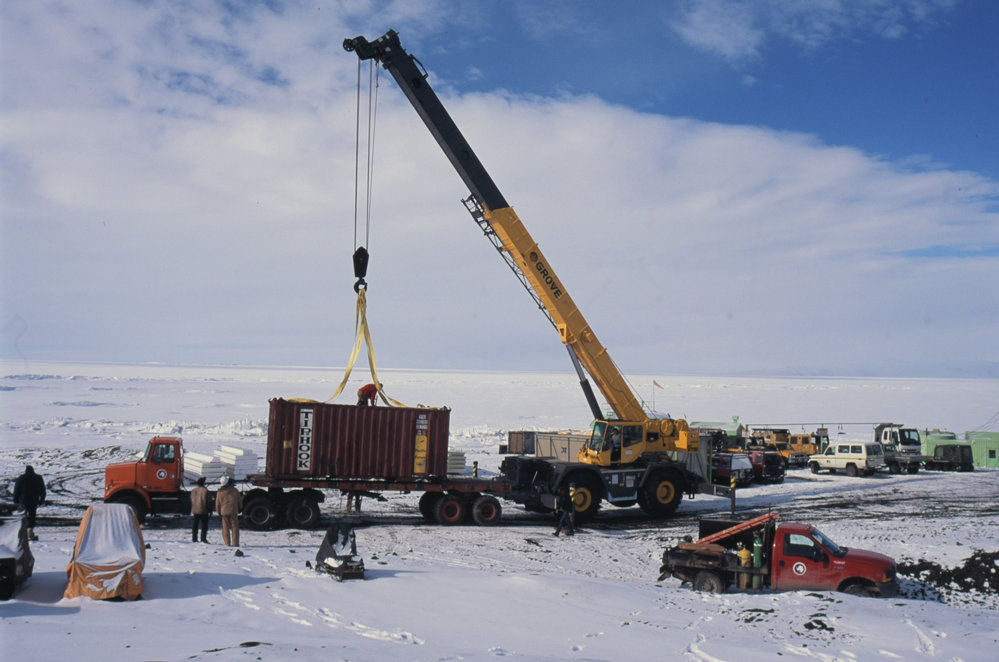 DescriptionShip Offload - crane unloading containersPhotographerKeith SpringerProgrammeK402EventK402-0102Season2001-2002Date TakenBetween 1st February 2002 and 28th February 2002OriginalSlideNo. People5-10LocationMcMurdo StationGeolocation[1] Position