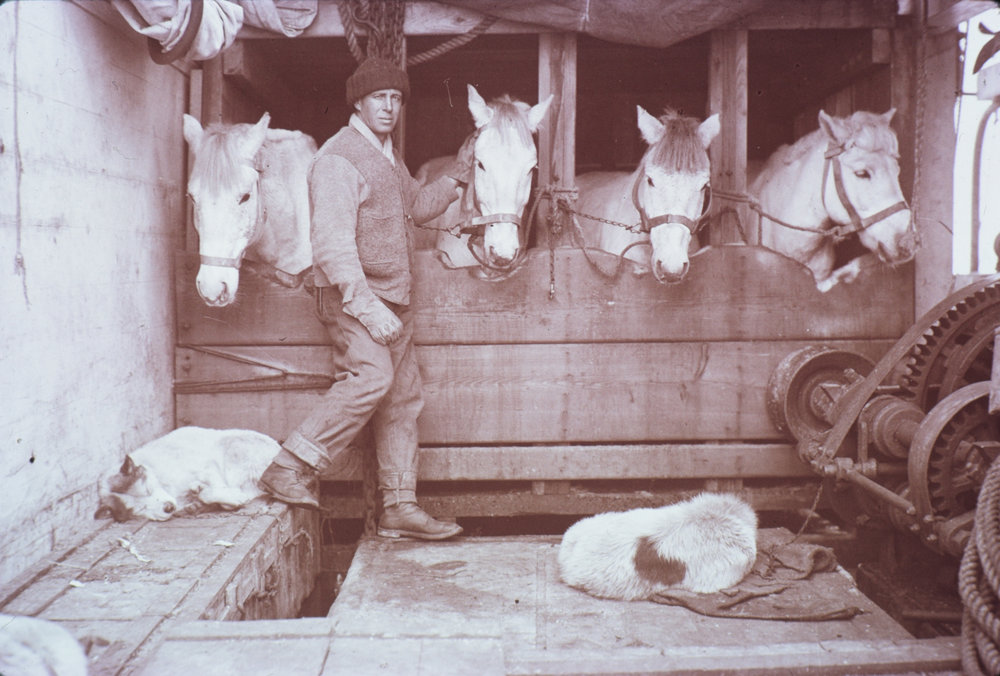 Captain Oates with Ponies on Board the 'Terra Nova'