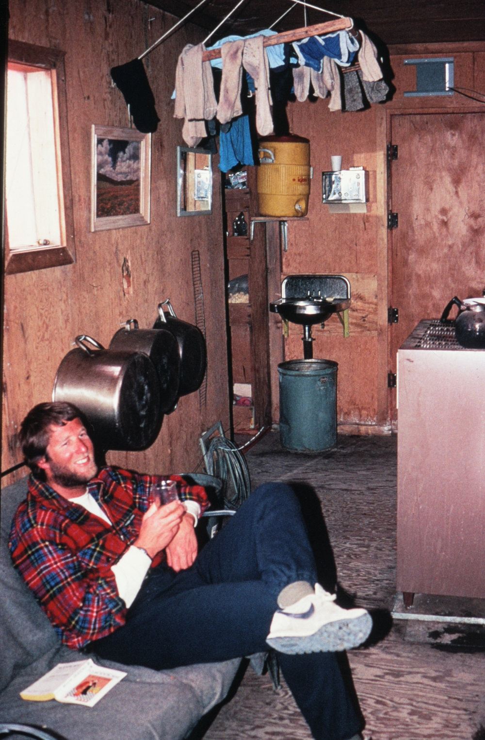 DescriptionLiving area of refuge hut at Cape HallettSeason1987-1988Date Taken1987-1988 SeasonOriginalSlideNo. People1LocationCape HallettGeolocation[1] Position