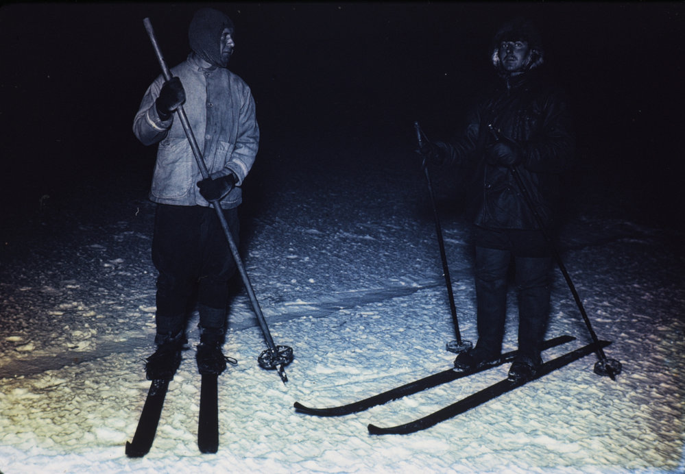 DescriptionOates (L) and Mears Go Out Skiing in the Night 1910-1912DepictsLawrence OatesCecil MearsPhotographerHerbert PontingOriginalSlideNo. People2-5LocationCape EvansGeolocation[1] Position