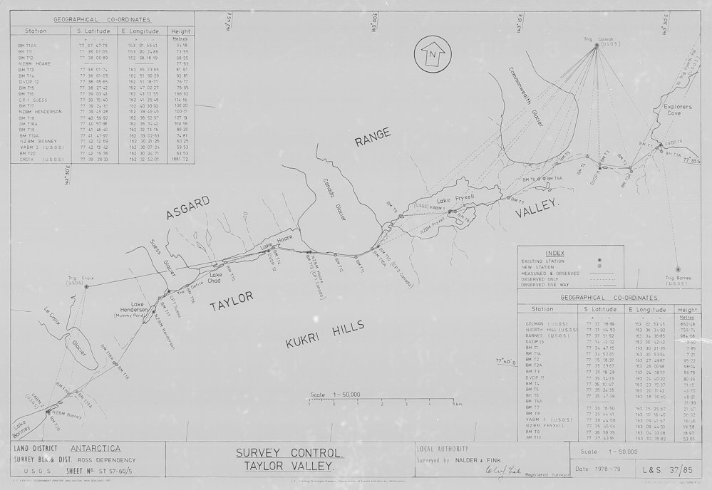 DescriptionSurvey control with geographical coordinates near Taylor ValleyPhotographerColin John FinkSeason1977-1978Date Taken1977-1978 SeasonOriginalApeture CardsLocationTaylor Valley