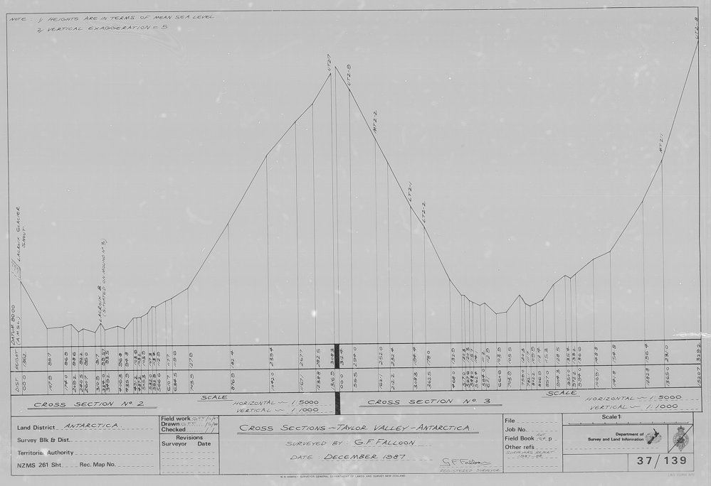 DescriptionCross Section No. 2 and 3 - Taylor ValleyPhotographerGarth FalloonSeason1987-1988Date Taken1987-1988 SeasonOriginalApeture CardsLocationTaylor Valley