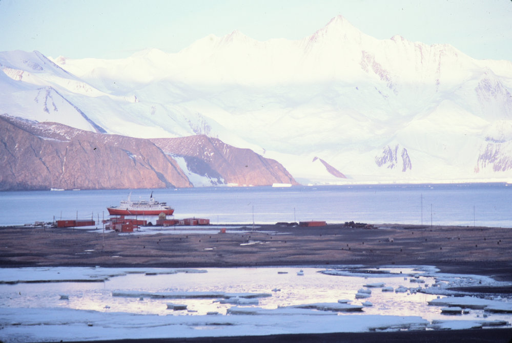 DescriptionHallett Station from near 'SPA"PhotographerColin MonteathSeason1982-1983Date TakenBetween 1st February 1983 and 28th February 1983OriginalSlideLocationCape HallettGeolocation[1] Position