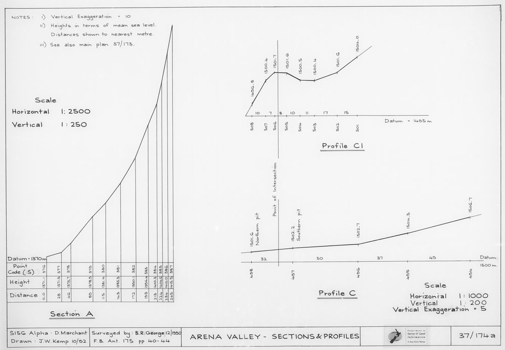 Section A, Profile C and C1. Surveyed by B.R. George. Drawn by J.W. Kemp.
