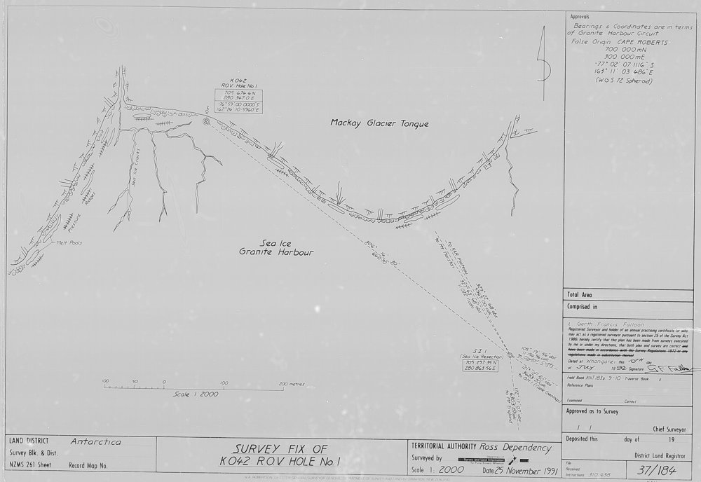 Land Survey of Mackay Glacier Tongue - Includes Sea Ice Granite Harbour. Surveyed by G.F. Falloon.