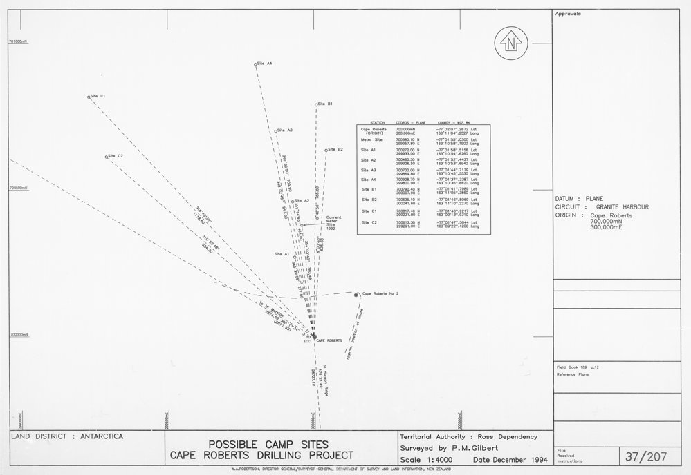 Possible Camp Sites - Cape Roberts Drilling Project. Surveyed by P.M. Gilbert.
