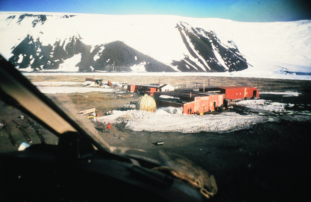DescriptionAerial view of Hallett StationSeason1984-1985Date Taken1984-1985 SeasonOriginalSlideNo. People2-5LocationCape HallettGeolocation[1] Position