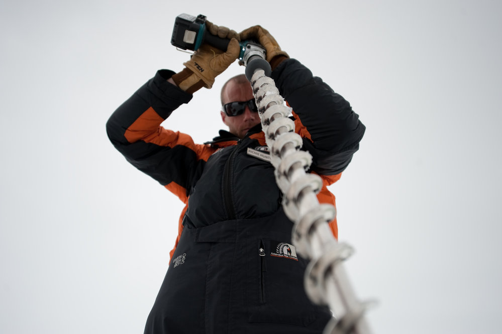 Field Trainer Richie Hunter profiling the sea ice on a trip to Cape Evans