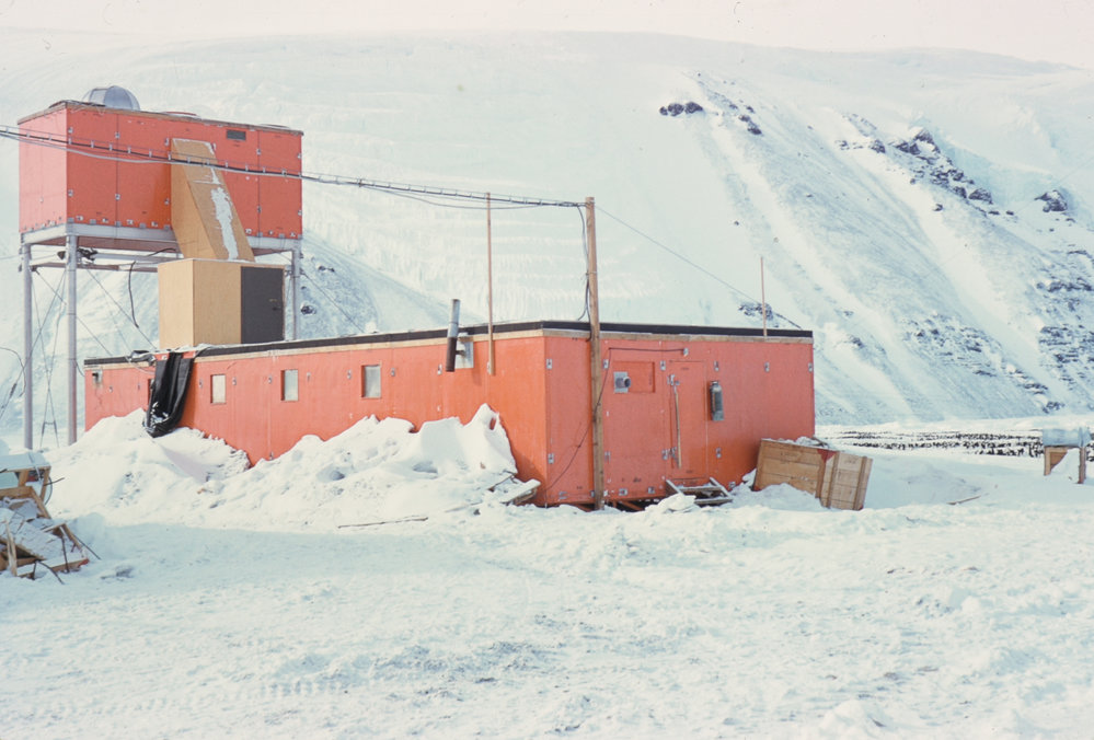 DescriptionScience buildings at Hallett StationPhotographerJ W BeagleySeason1956-1957Date Taken1956-1957 SeasonOriginalSlideLocationCape HallettGeolocation[1] Position