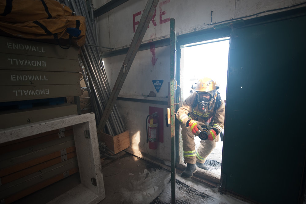 Staff practice their fire-fighting skills in realistic exercises at Scott Base