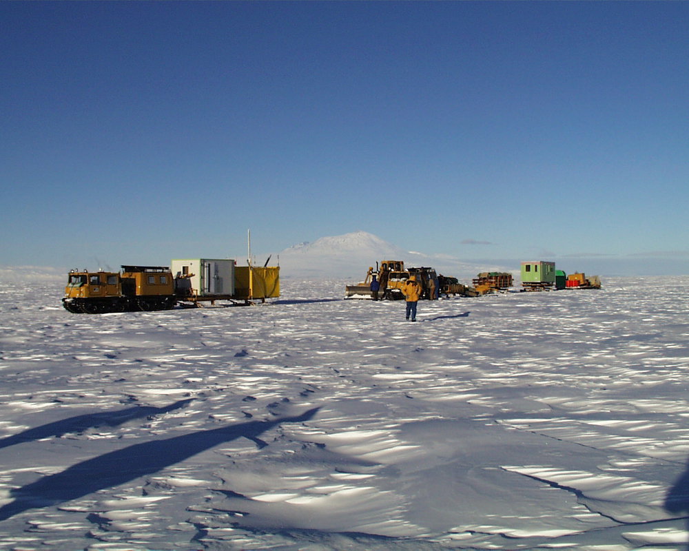 Person on skidoo in front of person on sled on textured snow with scientific equipment on sled. Green portacabin in background. Antarctica NZ, accessed 24/03/2026, https://adam.antarcticanz.govt.nz/nodes/view/28683