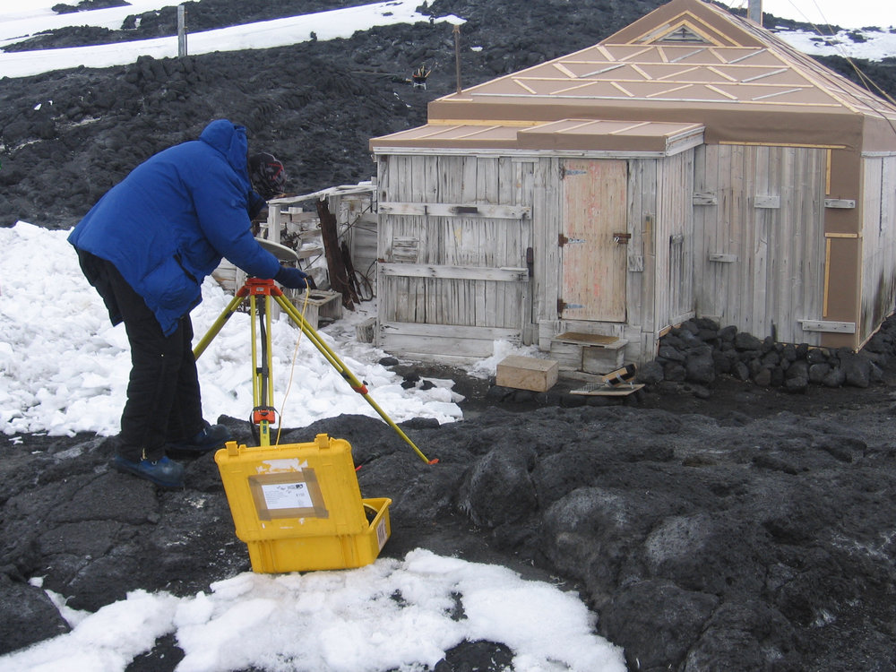 Aaron Jordan setting up the GPS at Cape Royds
