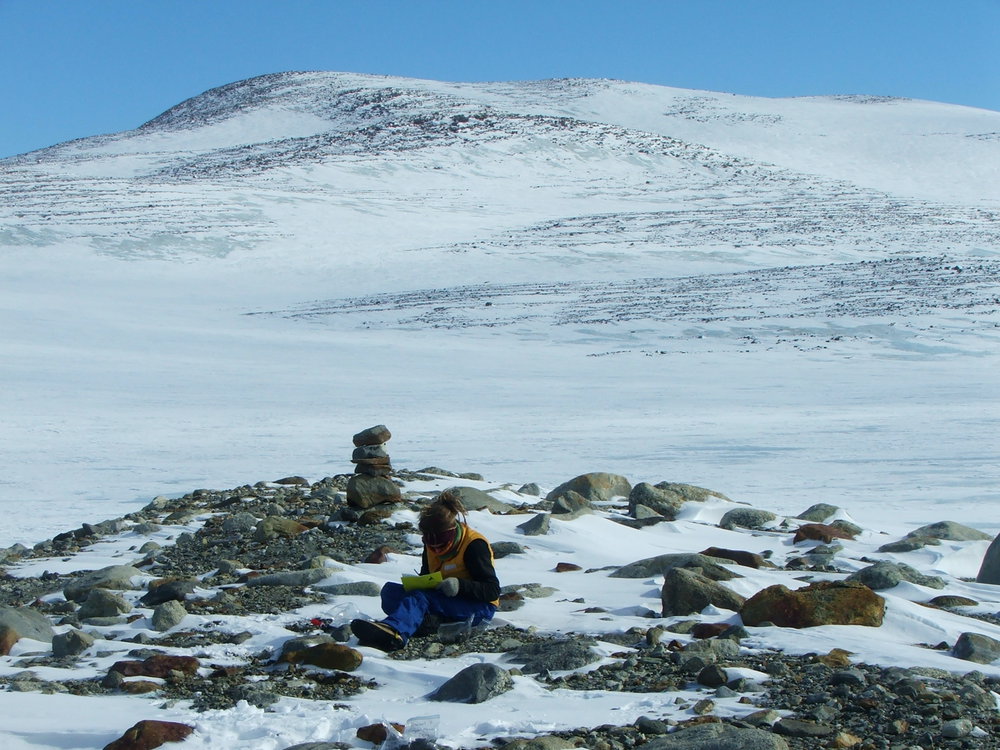 Sampling on a moraine near Campbell Glacier