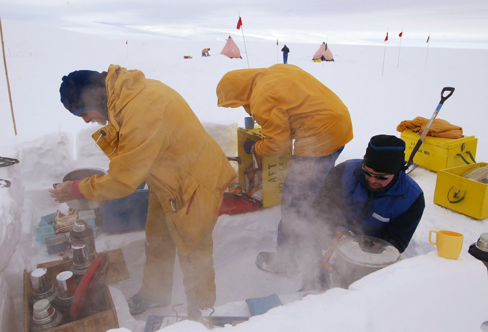 Making dinner from dehydrated food during Antarctic field training