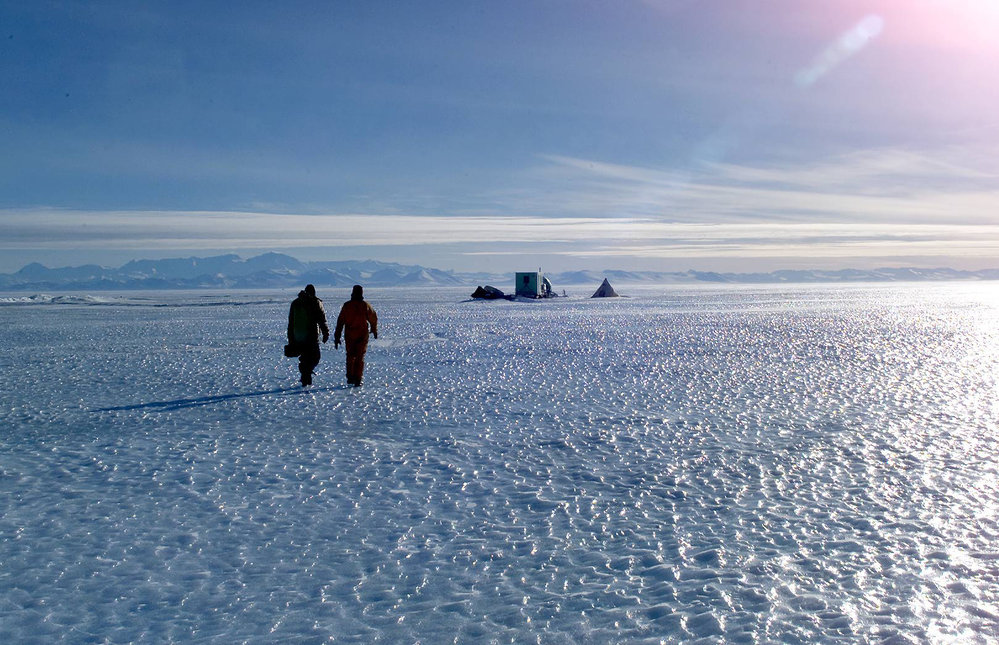 Seal scientists returning to camp over sea ice near Huttons Cliffs. Antarctica NZ, accessed 04/04/2026, https://adam.antarcticanz.govt.nz/nodes/view/29144