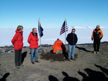 Dr Kristina M Johnson (Under Secretary, DOE), Karl Erb; Steven E Koonin (Under Secretary of Science, DOE), Rob Fenwick at the Wind farm on-ice dedication, 21 January 2010. Antarctica NZ, accessed 02/04/2026, https://adam.antarcticanz.govt.nz/nodes/view/29219