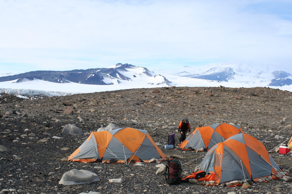 Field camp of K081B near the Koettlitz Glacier. 1st camp for the field-work on Koettlitz Glacier at ca 500 m altitude. Koettlitz Glacier in the background.. Antarctica NZ, accessed 03/04/2026, https://adam.antarcticanz.govt.nz/nodes/view/29242