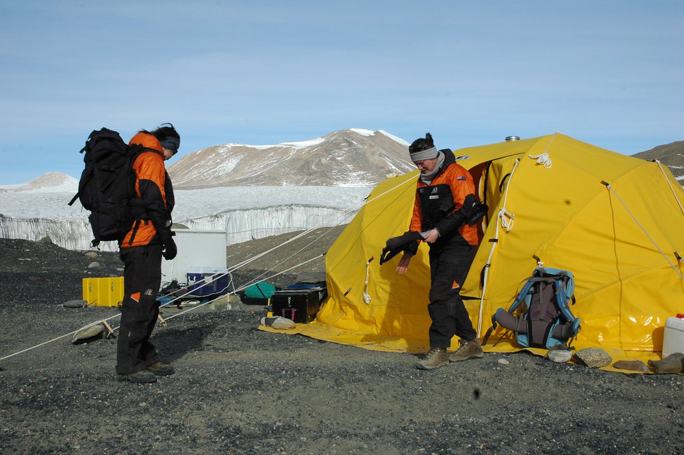 Field assistants preparing for field work at the Hobbs Glacier field camp.. Antarctica NZ, accessed 04/04/2026, https://adam.antarcticanz.govt.nz/nodes/view/29403