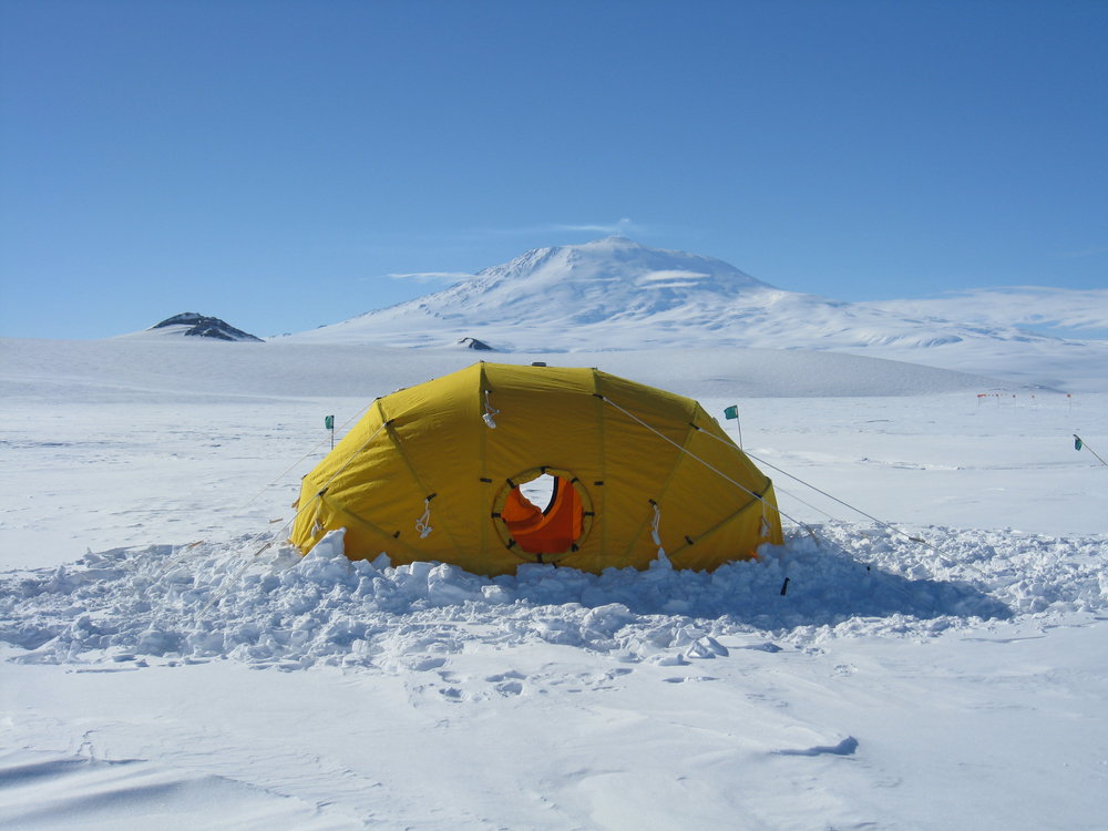 Enduro tent which was erected on AFT for the Nov/Dec field party in preparation for field work in the Hobbs Glacier Region. Mt Erebus in the background.. Antarctica NZ, accessed 04/04/2026, https://adam.antarcticanz.govt.nz/nodes/view/29404