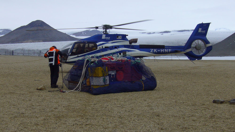 Helo and gear for Garwood Valley field camp, January 2010