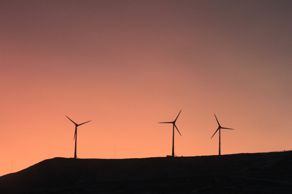A pink sky and the wind farm