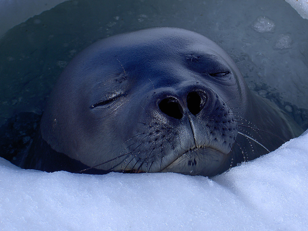 A Weddell seal takes over the plankton hauling hole