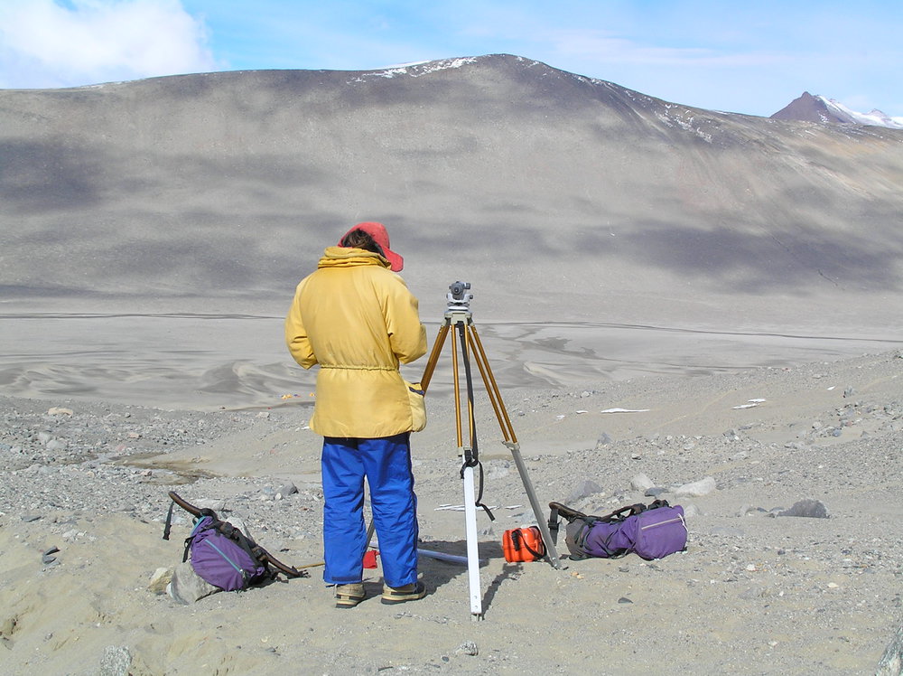 Dan Zwartz levels across the Lower Victoria Valley to determine the elevation of a moraine on the opposite side. Antarctica NZ, accessed 13/04/2026, https://adam.antarcticanz.govt.nz/nodes/view/30143