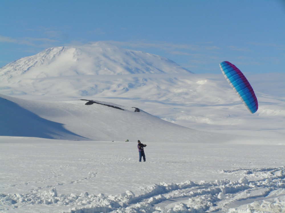 Kite Flying with Mount Erebus in the background