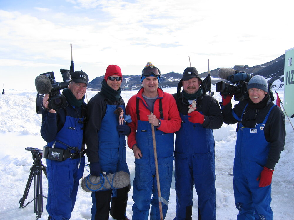 Miles Lamare sharing a joke and posing with the TV crews. Antarctica NZ, accessed 24/03/2026, https://adam.antarcticanz.govt.nz/nodes/view/30224