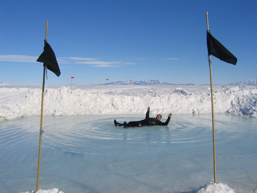 the distortion of the sea ice from horizontal movement results in the sea ice surface being below sea level. Once a hole is drilled through the ice, the sea water upwelled onto the ice surface