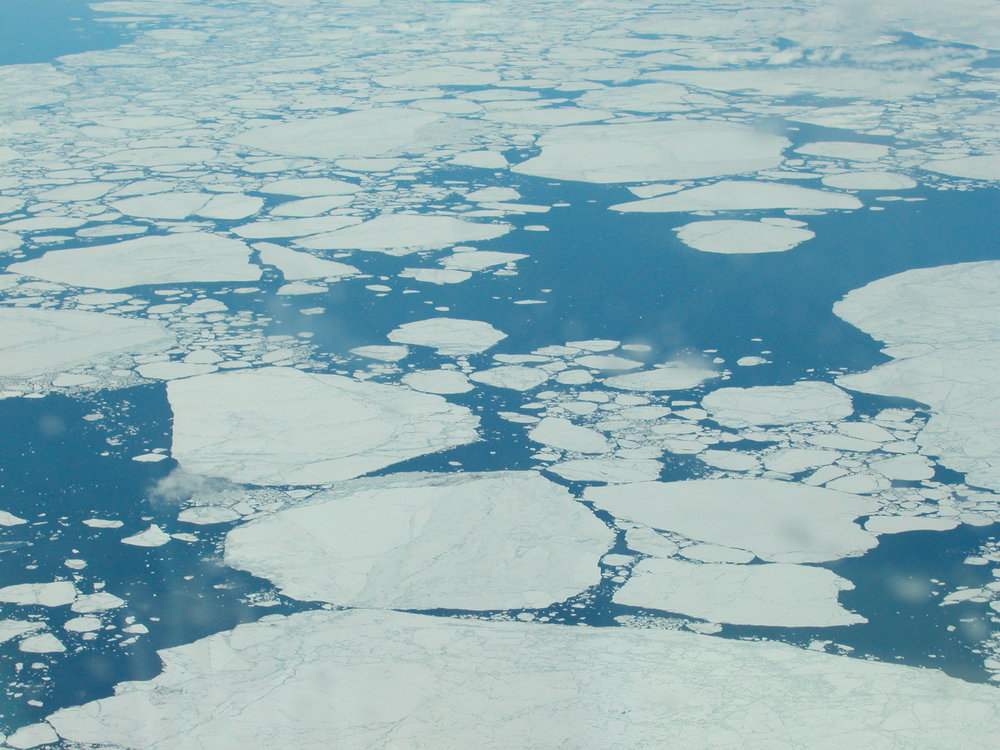 Photo taken of ice flow from flight deck of US Air Force snow equipped LC-130 Hercules on the return trip to New Zealand.. Antarctica NZ, accessed 18/03/2026, https://adam.antarcticanz.govt.nz/nodes/view/30345