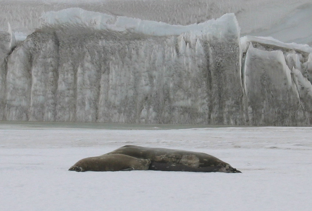 Seal adult and juvenille at Erebus Glacier tongue