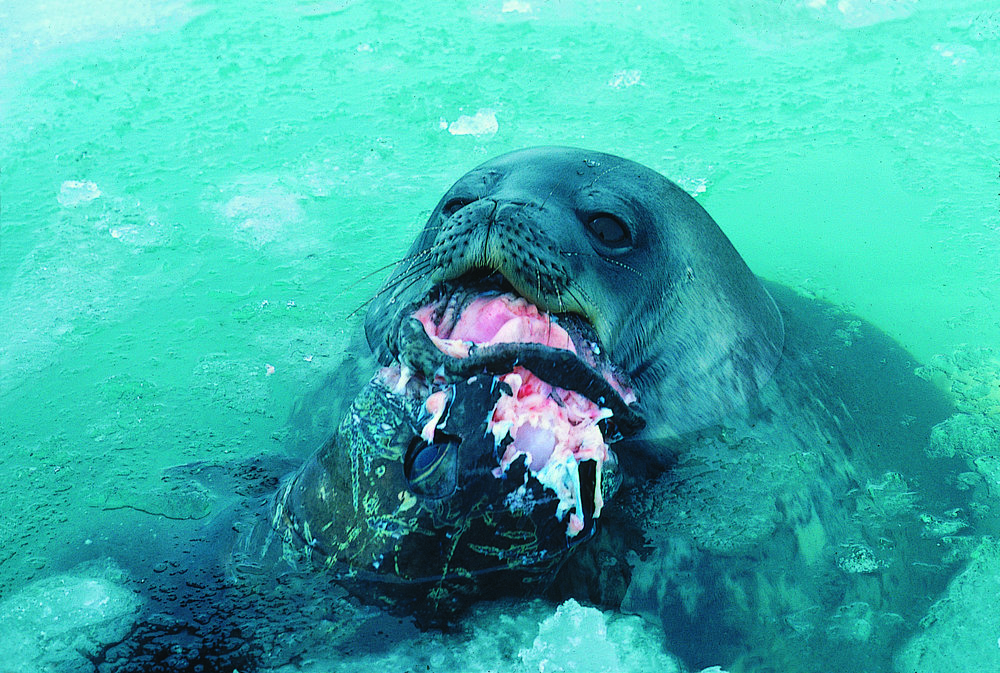Weddell seal with Antarctic cod; 1 km from Scott Base