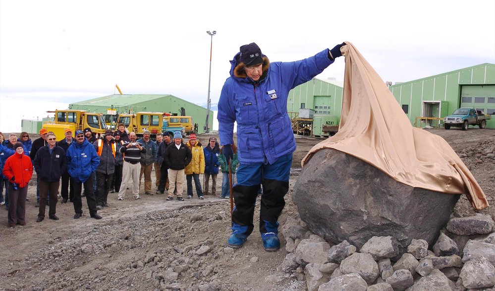Sir Edmund Hillary unveiling a plaque for the Hillary Field Centre. Antarctica NZ, accessed 19/03/2026, https://adam.antarcticanz.govt.nz/nodes/view/30942