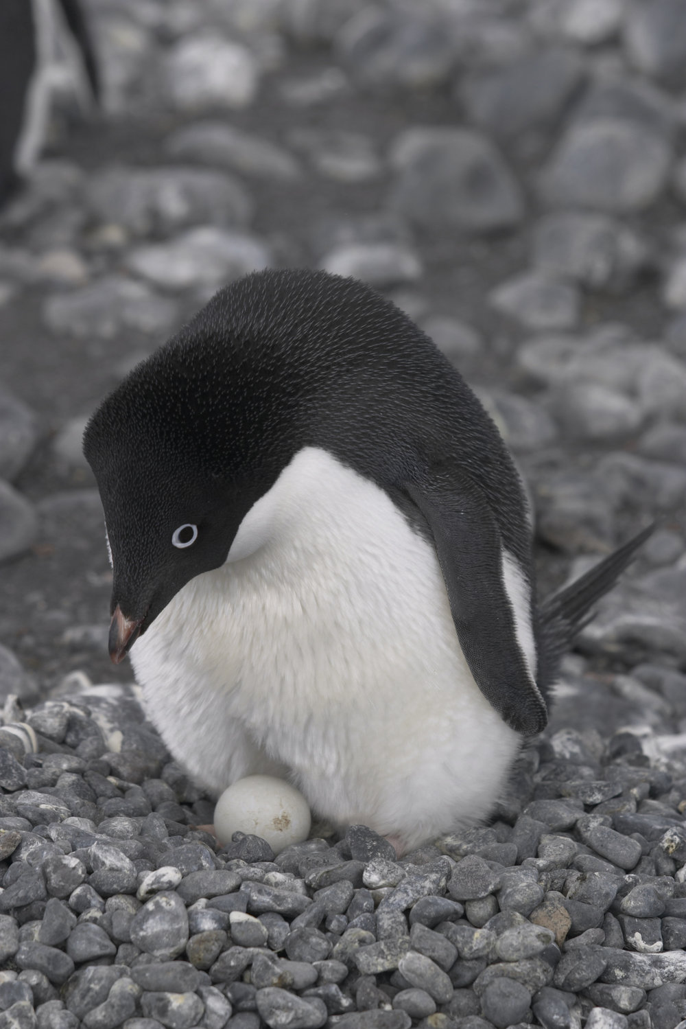 Adelie penguin incubating an egg