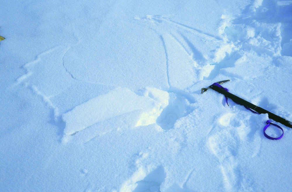 Fractured wind crust with hoar below, Chancellor Ridge