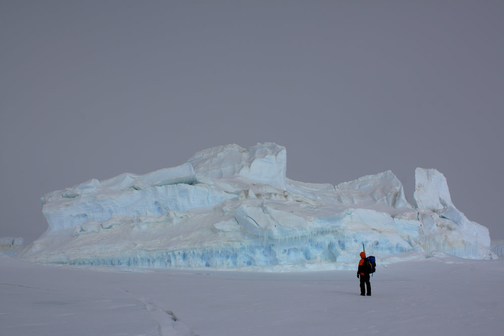 Inspecting an iceberg off Cape Roberts.