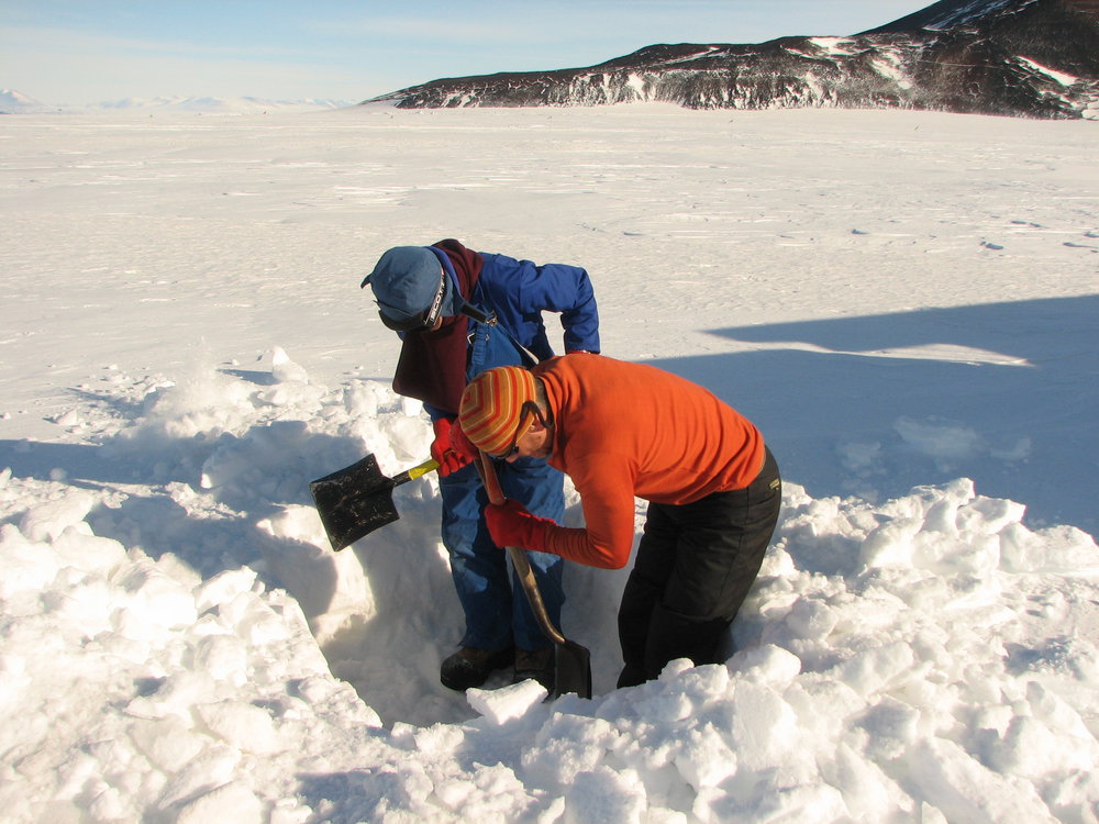 Graham and Simon clearing the snow in preparation for taking measurements. Antarctica NZ, accessed 09/04/2026, https://adam.antarcticanz.govt.nz/nodes/view/31467