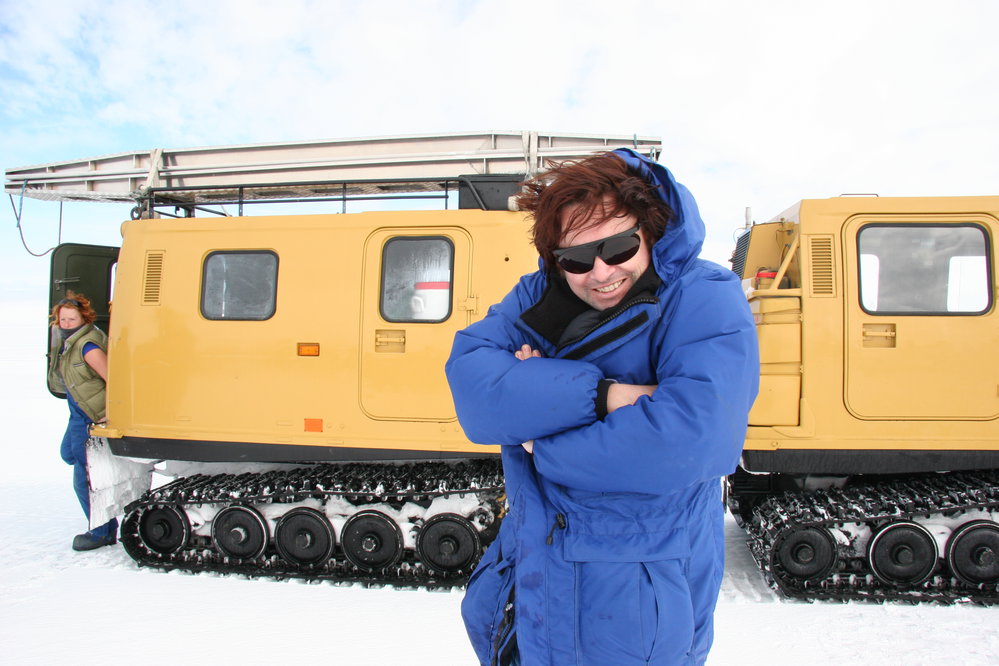 Gareth Farr in front of the Hagglund on the sea ice halfway to Cape Royds. Antarctica NZ, accessed 02/04/2026, https://adam.antarcticanz.govt.nz/nodes/view/31510