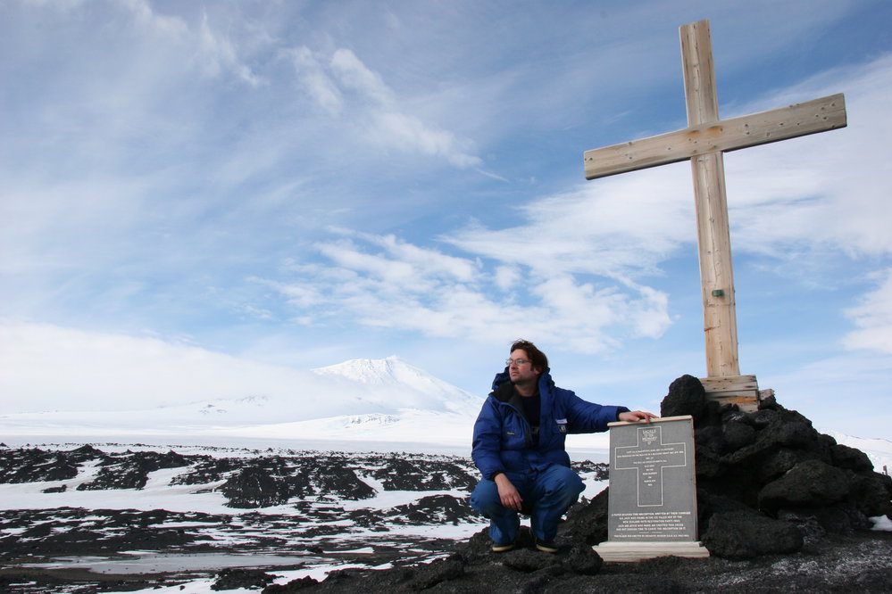 Gareth in front of the cross on the small hill near Scott's Hut at Cape Evans. Antarctica NZ, accessed 02/04/2026, https://adam.antarcticanz.govt.nz/nodes/view/31516