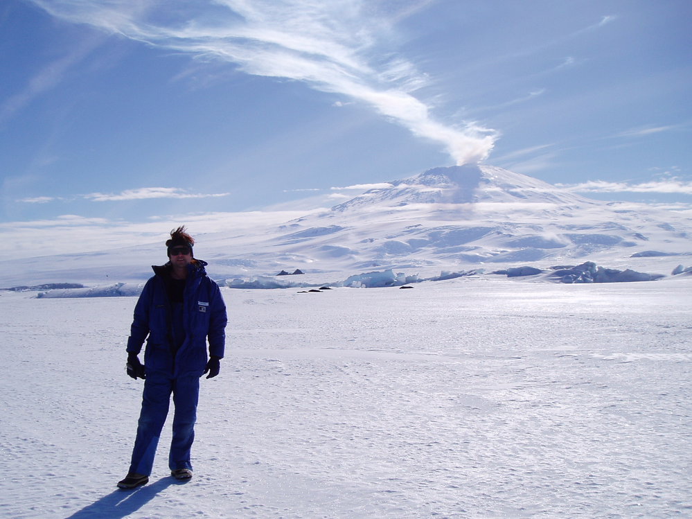 Gareth in front of a smoking Mt Erebus, on the sea ice halfway to Cape Royds. Antarctica NZ, accessed 02/04/2026, https://adam.antarcticanz.govt.nz/nodes/view/31520