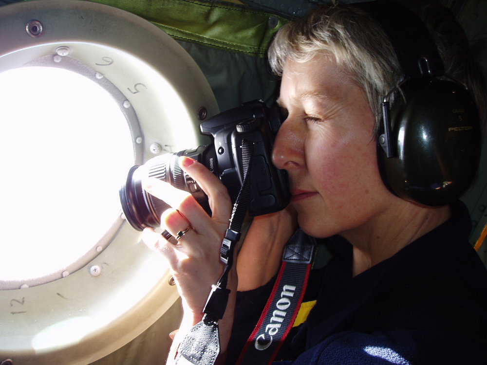 Megan in the Hercules on the way to Antarctica taking a photo of the first signs of sea ice. Antarctica NZ, accessed 02/04/2026, https://adam.antarcticanz.govt.nz/nodes/view/31534
