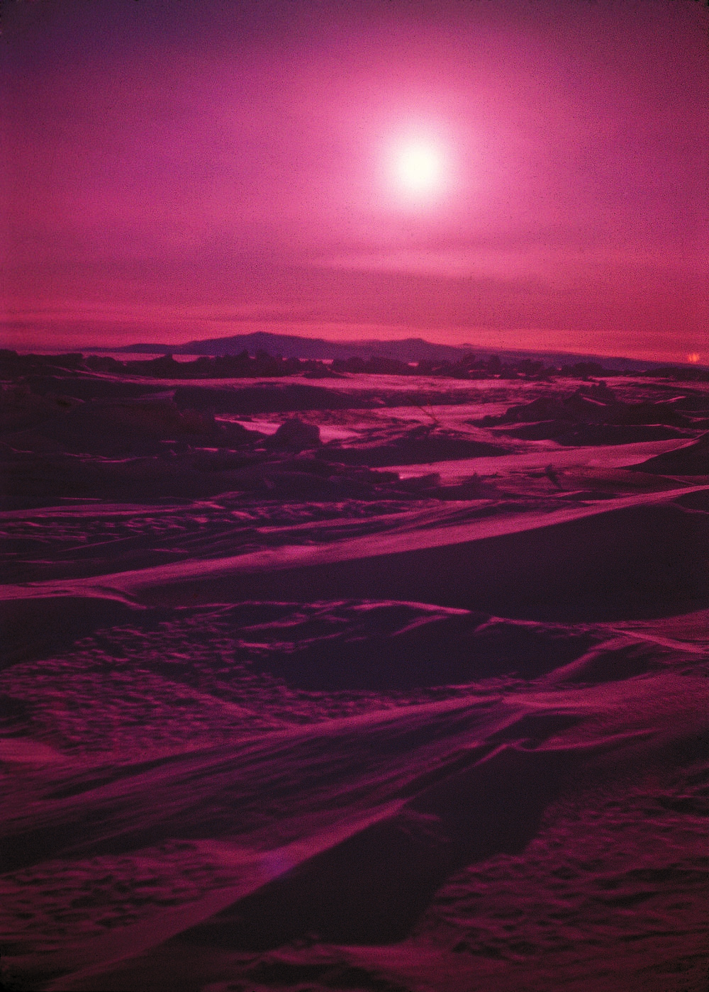 Midwinter moon above pressure ridges