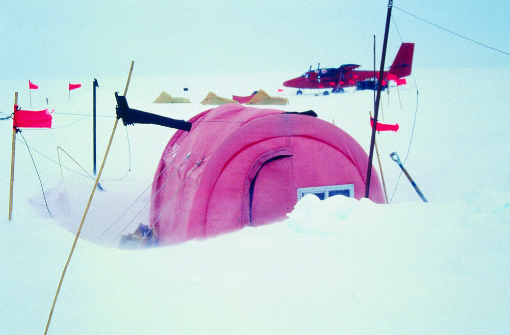 Snow build-up around Weatherhaven tent, Ickes Mountains, Marie Byrd Land, 1991. Antarctica NZ, accessed 19/03/2026, https://adam.antarcticanz.govt.nz/nodes/view/31849