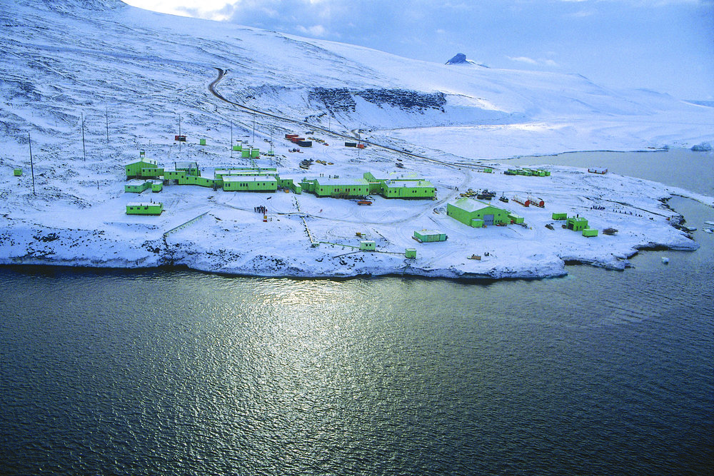 Scott Base in 1990/1991, with water instead of ice close by